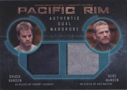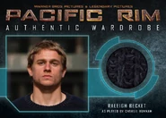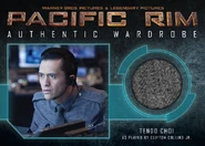 Pacific Rim Trading Cards are collectible memorabilia produced by Cryptozoic Entertainment. The set features imagery from the film, wardrobe and props randomly inserted into booster packs and cards autographed by the cast and crew of Pacific Rim. As the result of re-evaluation by Cryptozoic plans for the range were revised, reducing it to a single binder set. The set saw a "Q4 2014" (fourth quarter) release.[1]